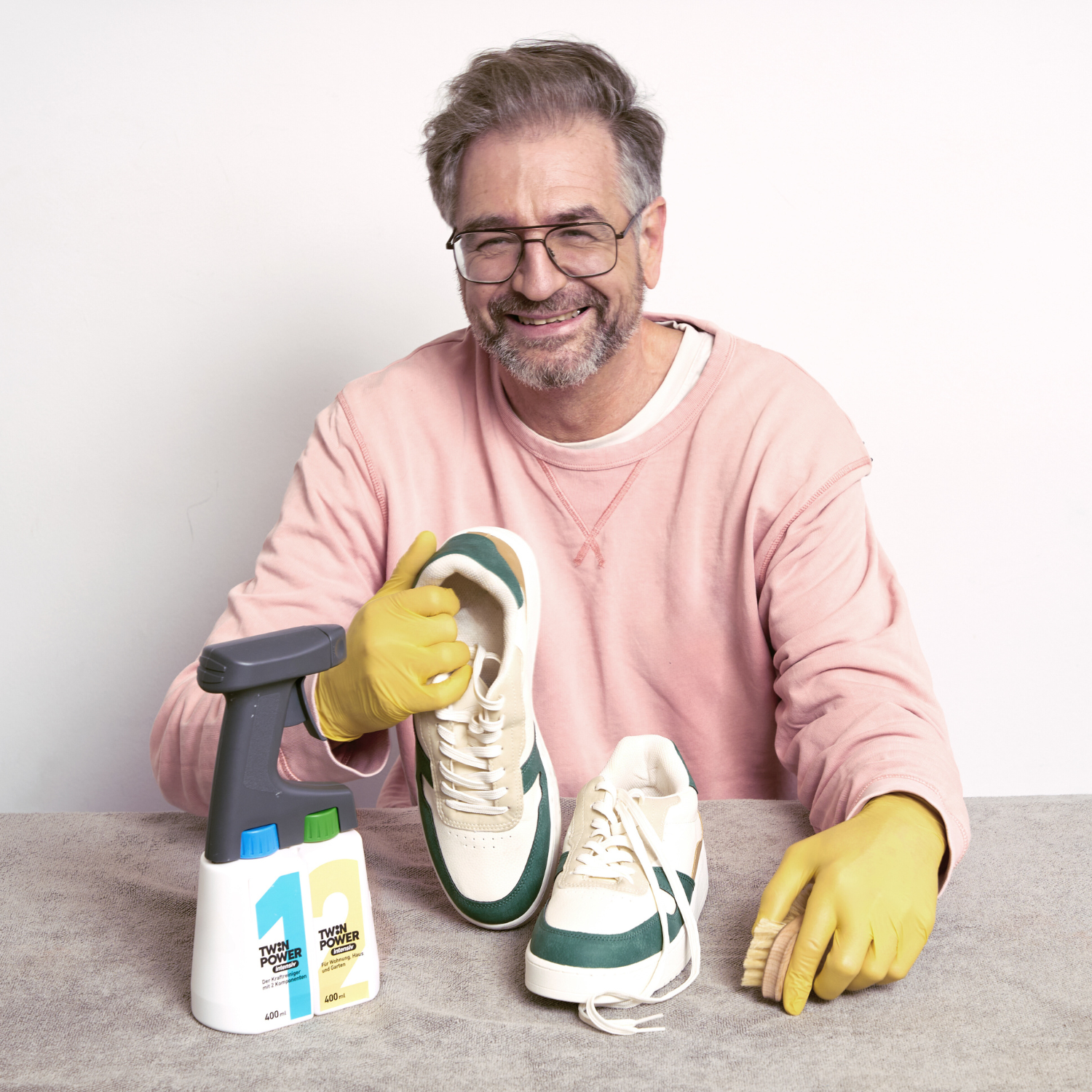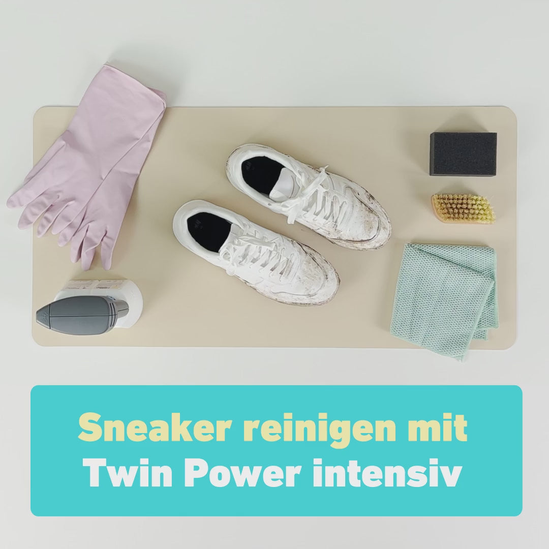 Im Vergleich zu herkömmlichen Reinigern ist Twin Power intensiv kraftvoll bei allen Flecken in der Küche, im Bad, bei Sneakern und mehr. Einfach nur aufsprühen, leicht einarbeiten, 5-15 Minuten einwirken lassen und die Reaktion für dich arbeiten lassen. Anschließend die Fläche gründlich mit Wasser abspülen.