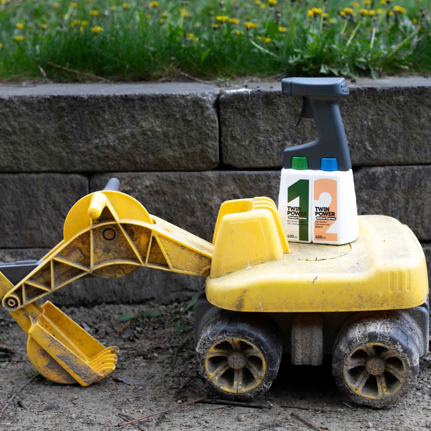 Der Twin Power Outdoor Express Reiniger bekämpft grüne Beläge auf Gartenmöbeln genauso gut, wie durch Witterung verursachte Verschmutzungen an der Terrasse oder dem Zierbrunnen. Egal ob Holz, Kunststoff oder Stein.